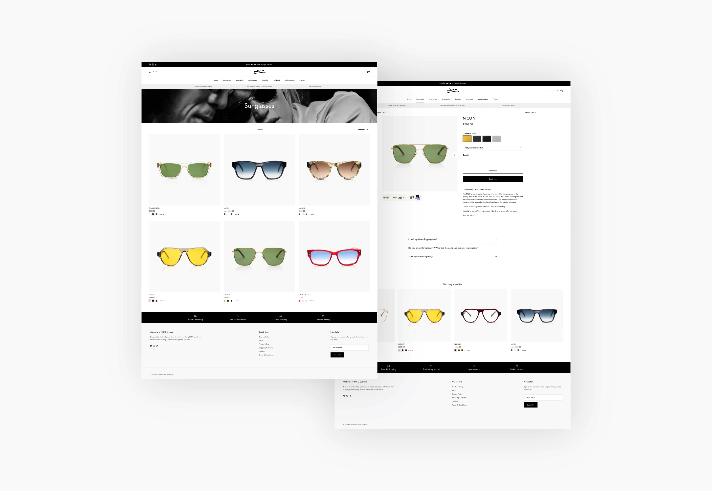 NICO is a premium eyewear brand known for its bold designs and rock’n’roll spirit. Since 2016, it has built a loyal organic following, in part thanks to its traction with celebrities. As part of a wider strategy to take the brand's success online, we helped NICO design and develop a Shopify store.