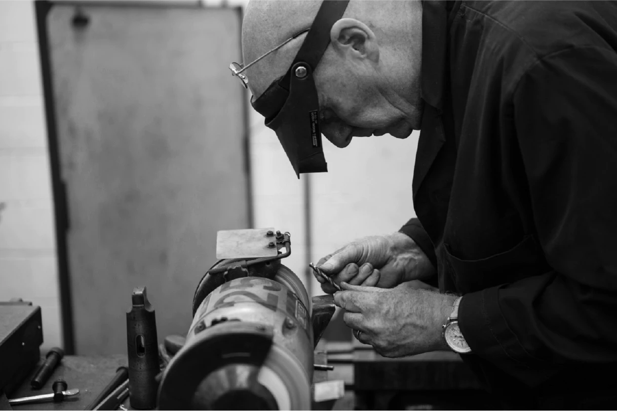 Our analysis of their inherent value proposition against competitors highlighted manufacturing expertise as a powerful point of difference. This led to an identity built around that strength: a stamp-like mark inspired by workshop tooling, a polymer (grey) / rubber (blue) palette, utilitarian typography, and atmospheric black-and-white imagery capturing the gritty precision of the manufacturing process.