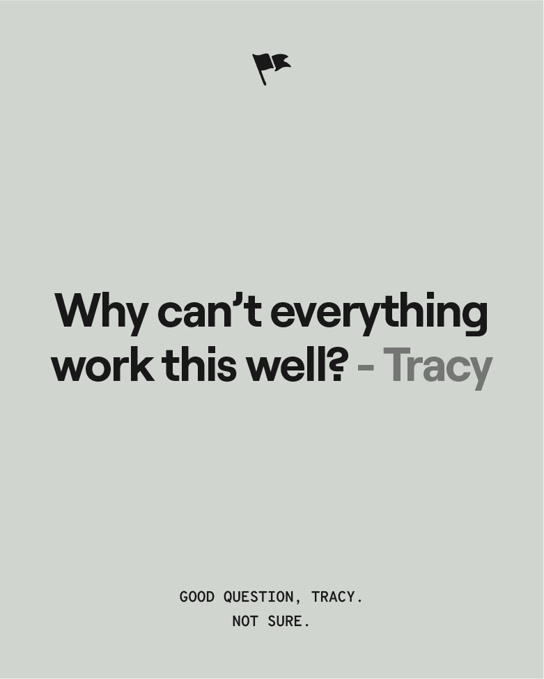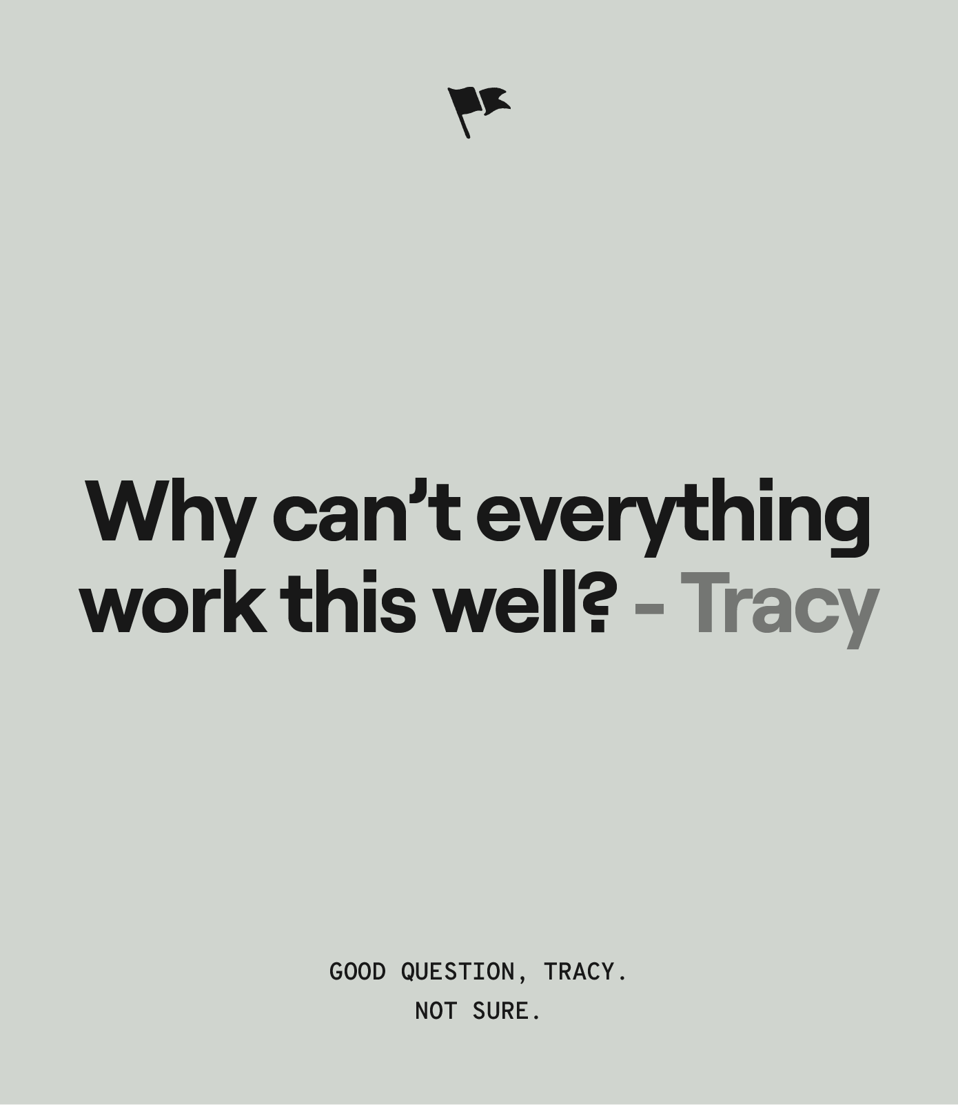 To bridge the premium positioning and the mundanity of the product, we introduced a witty, irreverent tone of voice to the mix. Reflecting the type of language used by customers, copy was to be kept informal, unpretentious, but technical and respectful where appropriate.
